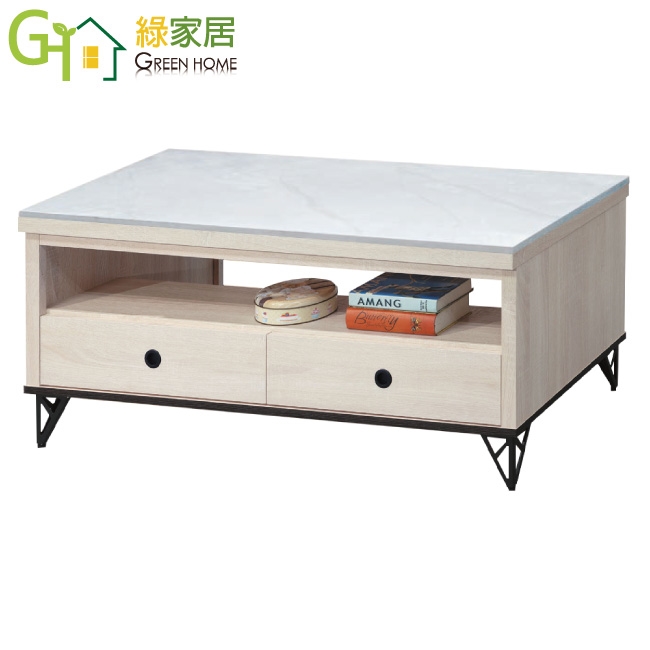 【綠家居】瑪法4尺二抽岩板大茶几(三色可選)