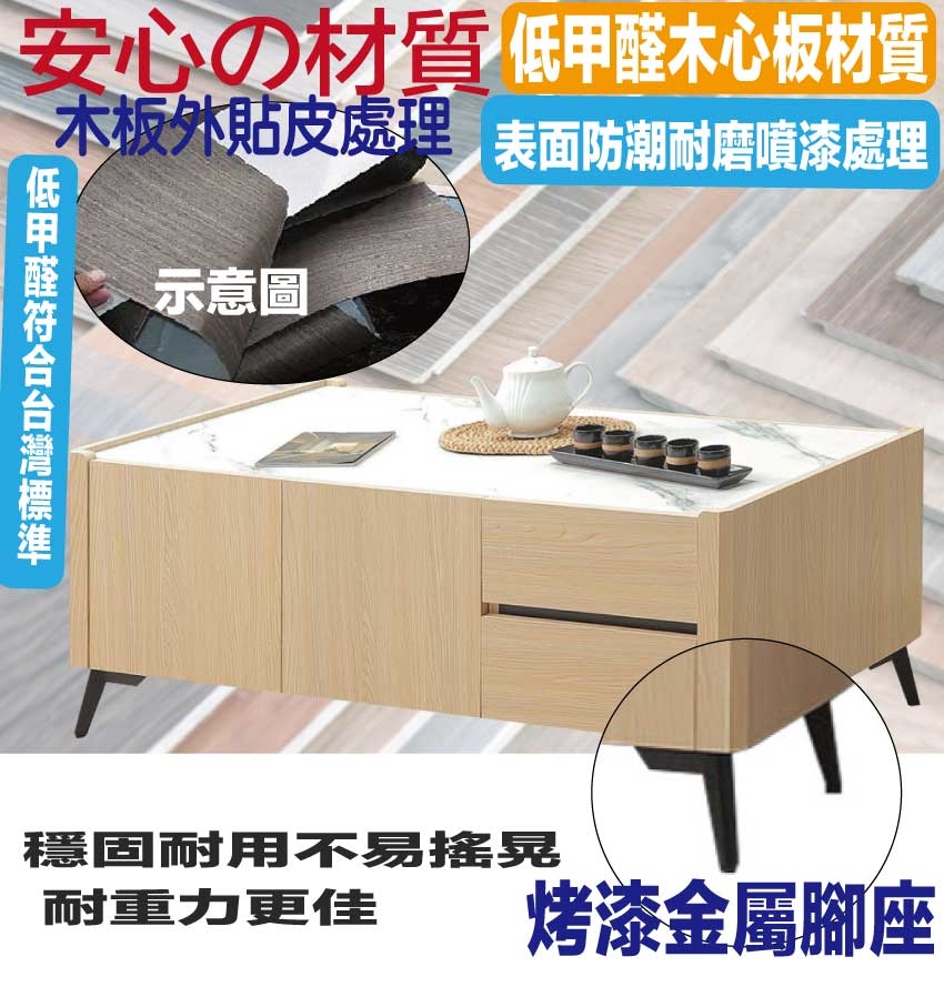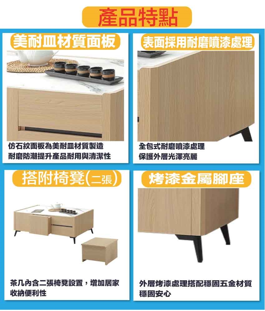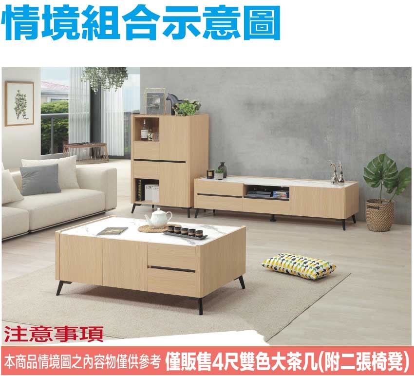 - ◆產品名稱:【綠家居】瑪多4尺二門二抽大茶几(耐磨美耐皿面板+附贈單張椅凳)
