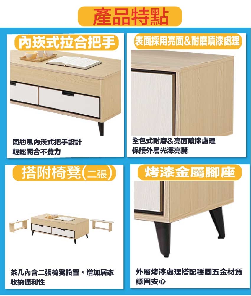 - ◆產品名稱:【綠家居】摩卡雙色4尺升降機能大茶几(桌面可升降+收納椅凳二張)