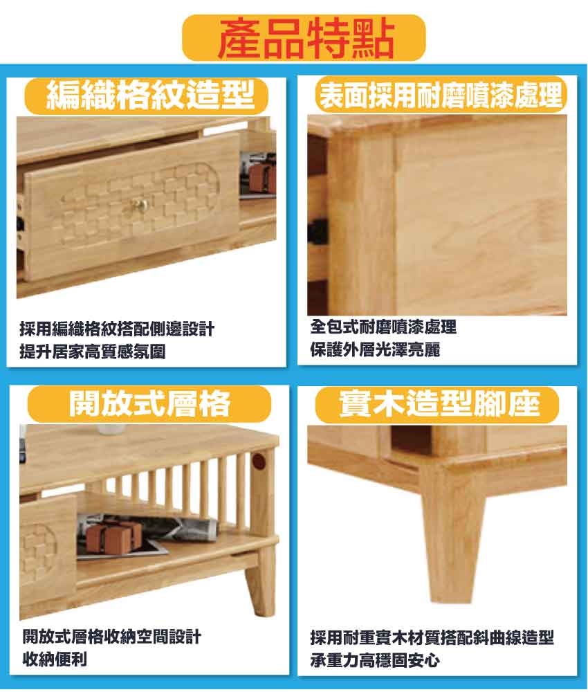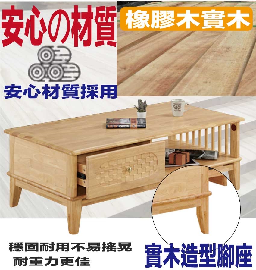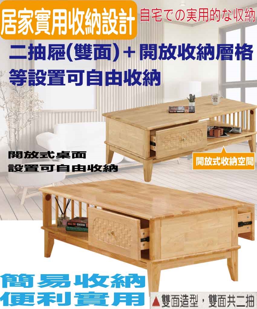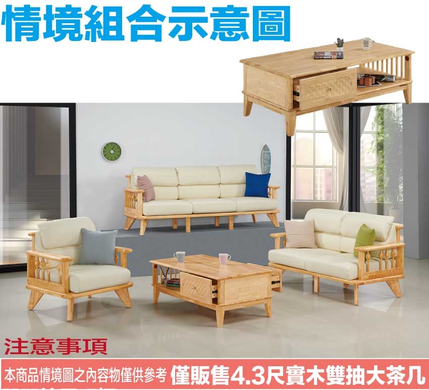 - 產品名稱:【綠家居】西4.3尺實木二抽大茶几