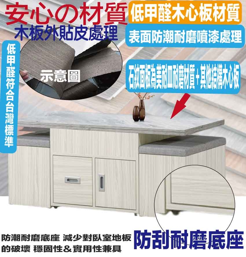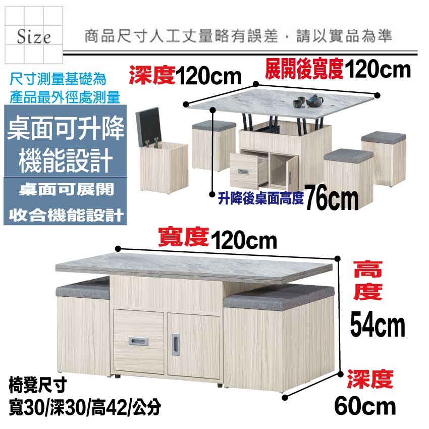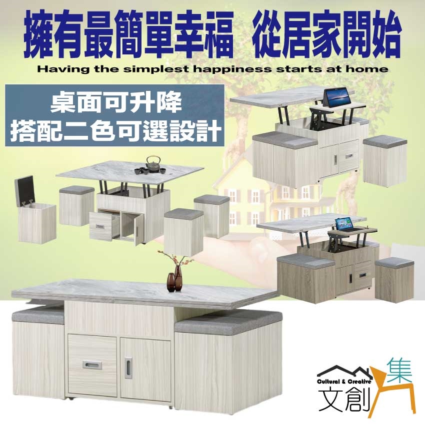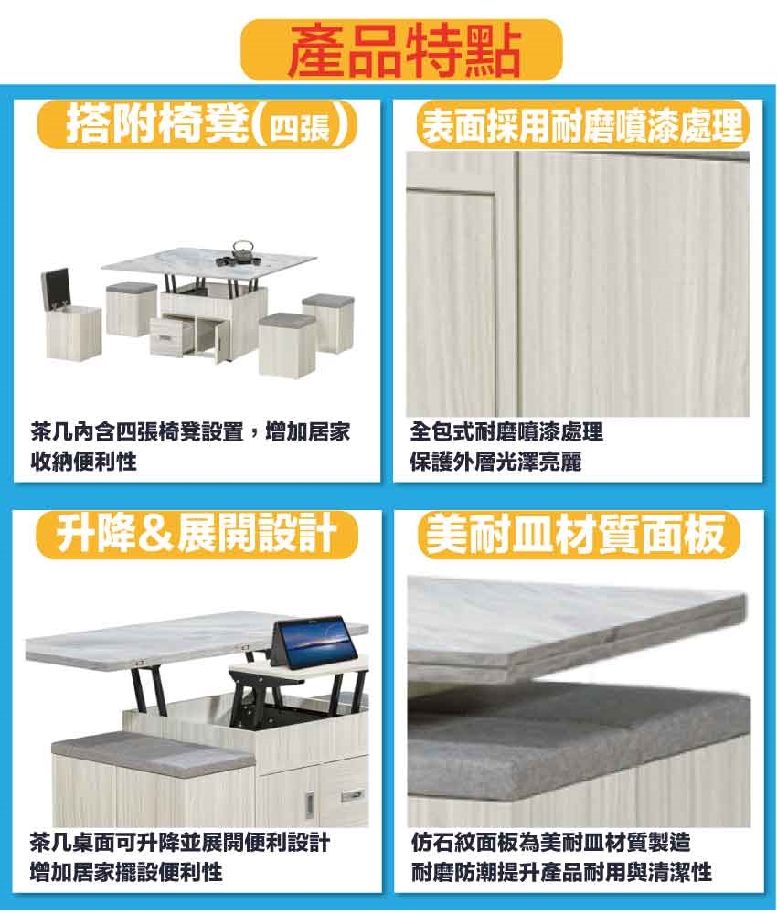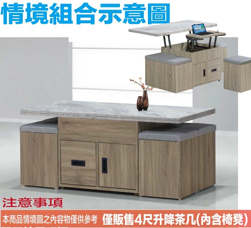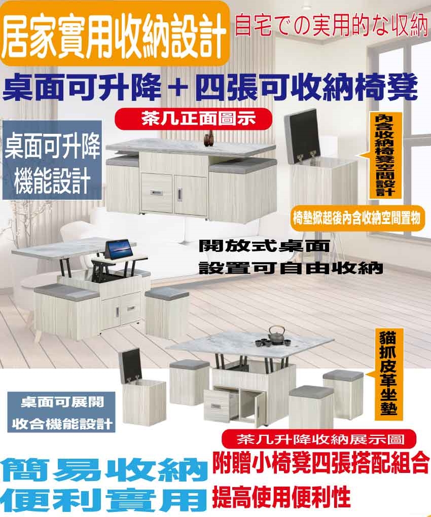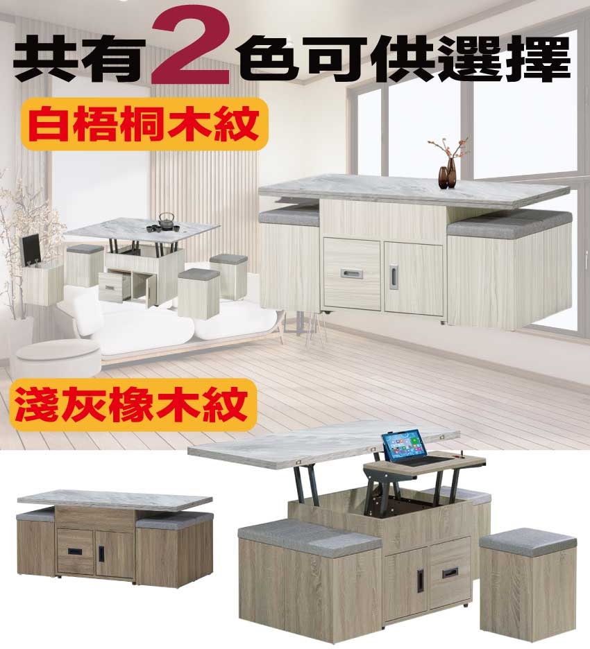 - 產品名稱:【綠家居】摩亞4尺可升降大茶几(二色可選+附贈可收納椅凳四張)