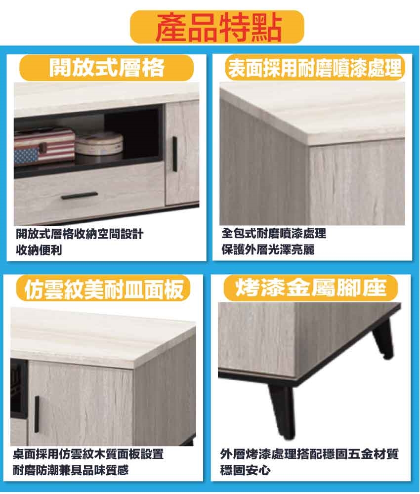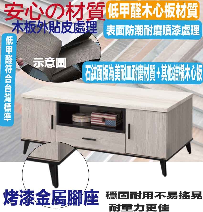 【綠家居】凱曼雙色4尺四門單抽大茶几