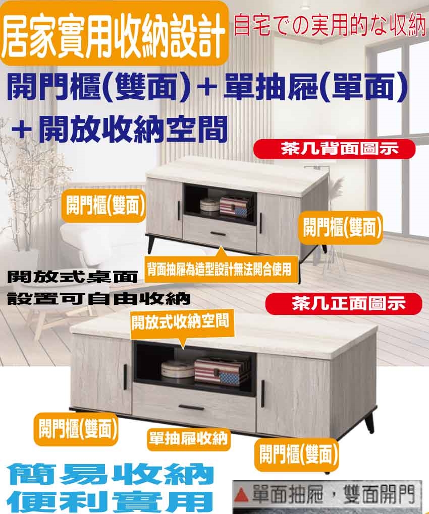 - 產品名稱:【綠家居】凱曼雙色4尺四門單抽大茶几