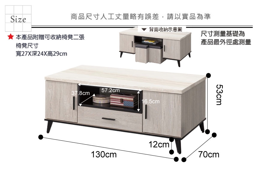 - 尺寸:(寬)130x(深)70x(高)53/公分