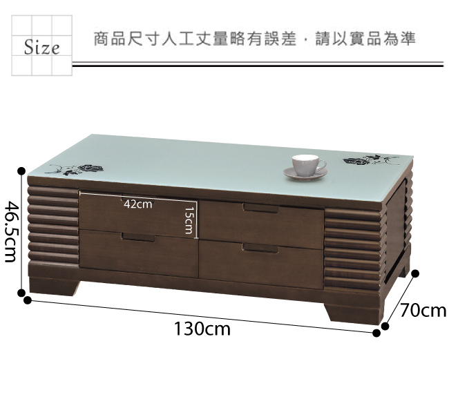 產品名稱:【綠家居】奎德 胡桃木紋4.3尺玻璃大茶几(附贈收納椅凳二張) 產品尺寸: 茶几:(寬)130x (深)70x(高)46.5/ 公分 材質:松木實木+防蛀木心板 塗漆:優利坦塗漆耐磨處裡 背板:美背處理 滑軌:鋼珠滑軌 面板:5mm高硬度強化玻璃商品編號 | 尺寸 | 顏色 | 組裝方式 |