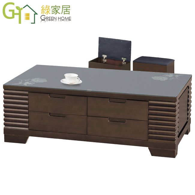 【綠活家】奎德 胡桃木紋4.3尺黑玻大茶几(附贈收納椅凳二張)