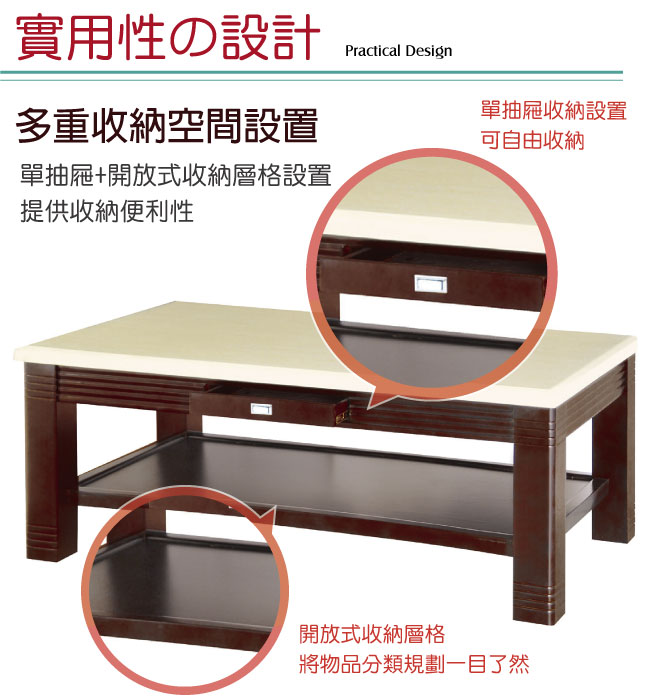【綠家居】洛亞 胡桃色4.3尺雲紋石面大茶几 充滿時尚風格的造型線條,能輕鬆地融入各種空間風格,更顯一番氣質。茶几為開放式收納層格+單抽屜等多收納結構,讓您不必再頭痛地整理桌上的瓶瓶罐罐;茶几材質採用防蛀木心板材質+優利坦抗磨三層全包式塗漆處理+2cm雲紋石面板+五金造型把手+鋼珠滑軌結構等搭配設計讓您不再煩惱耐用性,尺寸符合現在小宅空間所需,時尚且實用便利的設計,即使身在都市的喧囂鬧區,只要回到了家,就彷彿進入心中的一方小空間 【綠家居】洛亞 胡桃色4.3尺雲紋石面大茶几 可千萬別錯過喔!現在購買專人送到府服務,免組裝+免運費,讓你省時省力省運費!