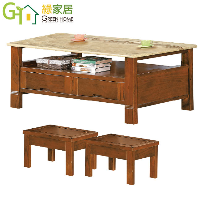 【綠家居】亞德 典雅實木4.5尺雲紋石面大茶几(附贈椅凳二張)