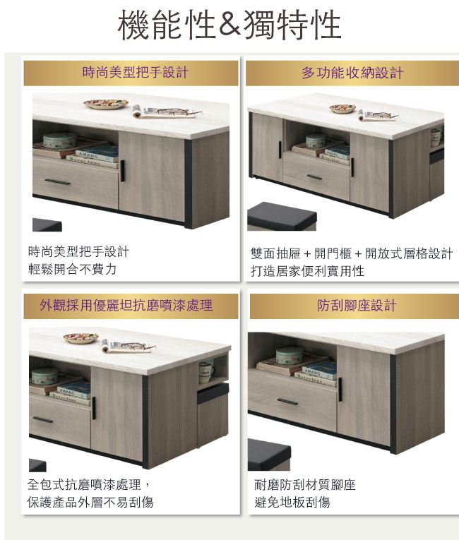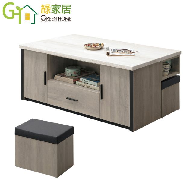 商品介紹 | 【綠家居】烏茲 時尚4.3尺仿雲紋木質大茶几(附贈二張收納椅凳) 橡木紋色系+現代簡約風格+安心材質製造,整體採用防蛀木心板+五金滑軌結構+仿雲紋石面紋路木質桌面板+防潮黑漆腳座等安心材質製造,搭配採用採用開門櫃+雙面二抽屜+開放式收納+二張收納椅凳等收納空間設計,全由專人配送到家,專業安心服務,替你省下更多時間! 【商品特色】 橡木紋色系+現代簡約風格+安心材質製造,使用放心+搭配居家更便利 採用防蛀木心板+五金滑軌結構+仿雲紋石面紋路木質桌面板+防潮黑漆腳座等安心材質製造 採用開門櫃+雙面二抽屜+開放式收納+二張收納椅凳等收納空間設計 此商品不需要DIY組立,此商品為組立後之成品 品質保證、專業設計、貼心服務 全由專人配送到家,專業安心服務,替您省下更多時間 |