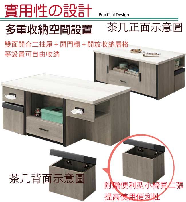 【綠家居】烏茲 時尚4.3尺仿雲紋木質大茶几(附贈二張收納椅凳)