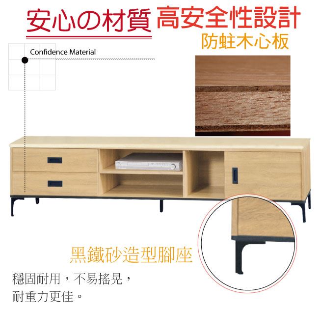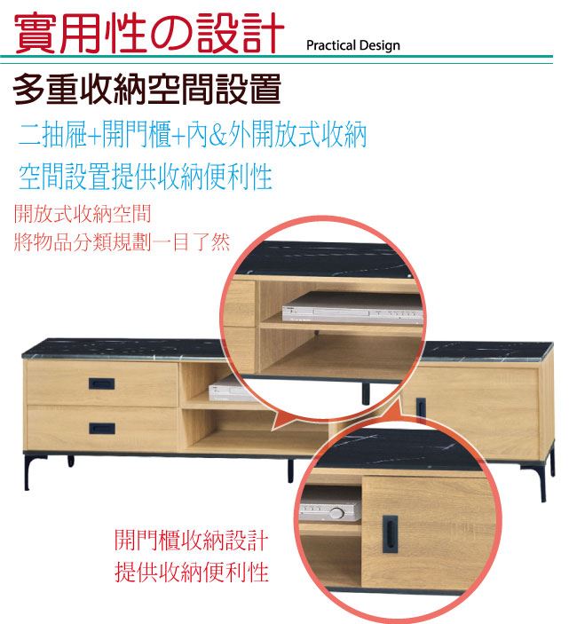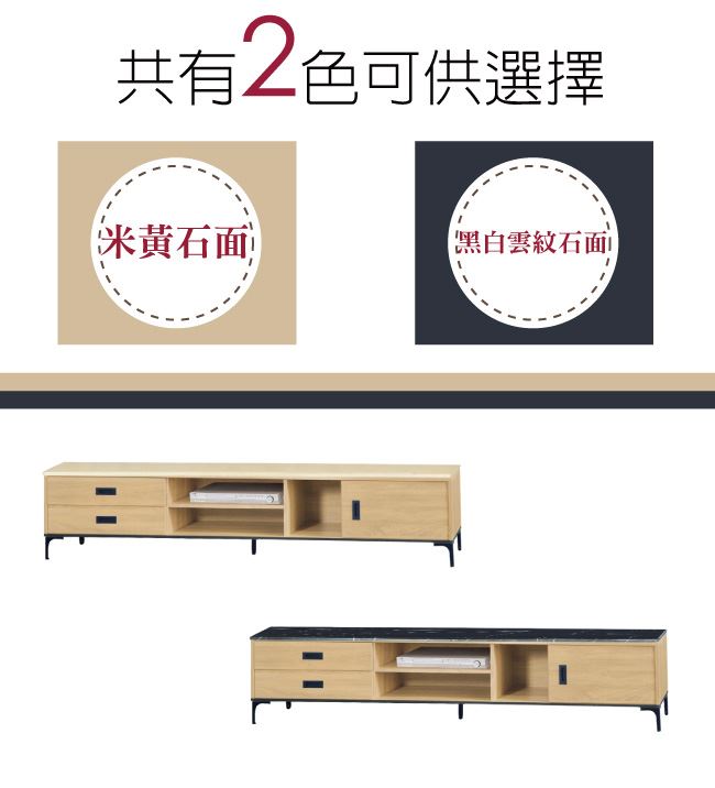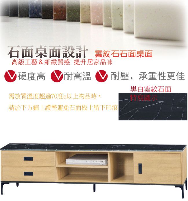 材質 | ◆產品名稱: 【綠家居】巴洛納 單門7尺石面二抽電視櫃(二色石面可選) 尺寸:(寬)211x(深)41x(高)49/公分 ◆材質: 材質:防蛀木心板+黑鐵砂框架&腳座+五金滑軌結構+12mm雲紋石面板 噴漆:防潮耐磨噴漆處理