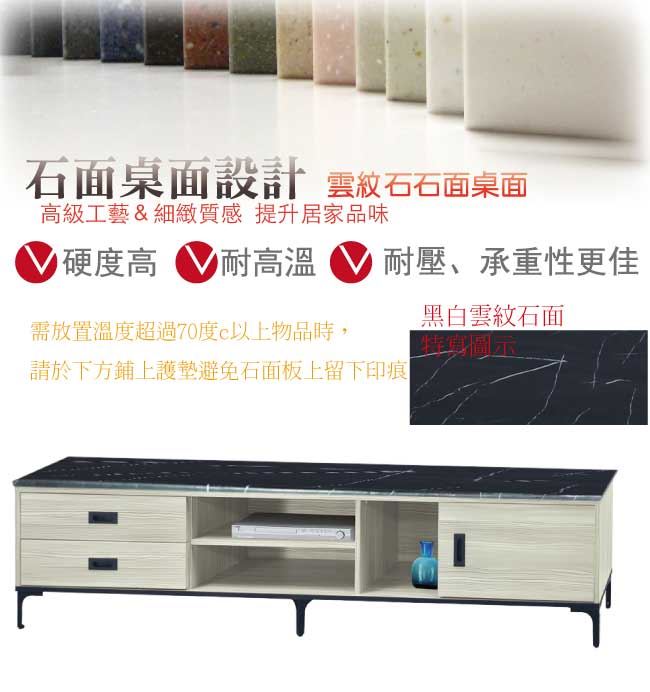 【綠家居】多巴納 單門7尺石面二抽電視櫃(二色石面可選)