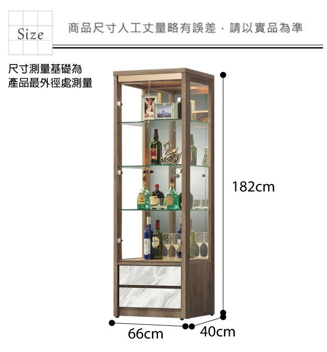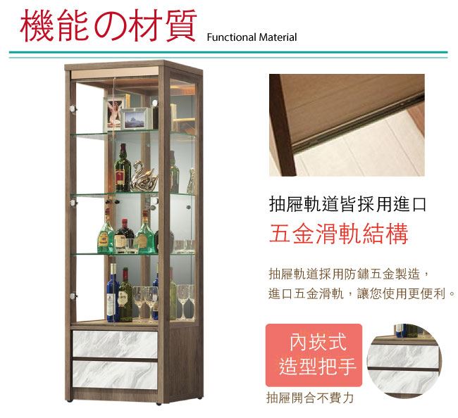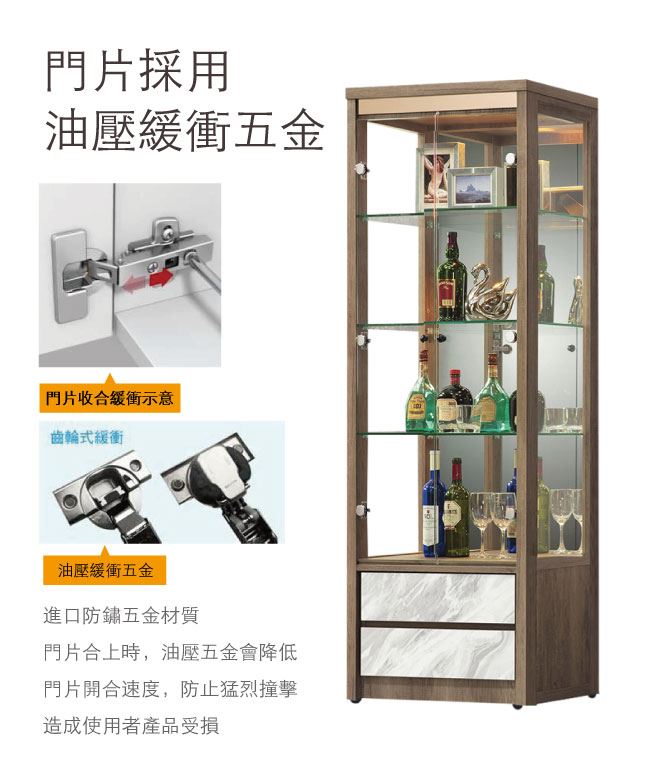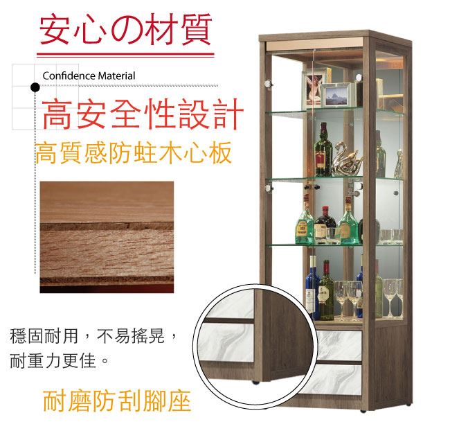 材質 | ◆產品名稱:【綠家居】 尼爾 雙色2尺二門二抽展示櫃/收納櫃 尺寸:(寬)66x(深)40x(高)182/公分 ◆材質: 材質:防蛀木心板+五金滑軌結構+防潮耐磨腳座+防夾手緩衝門片五金+強化玻璃門片 |