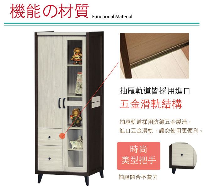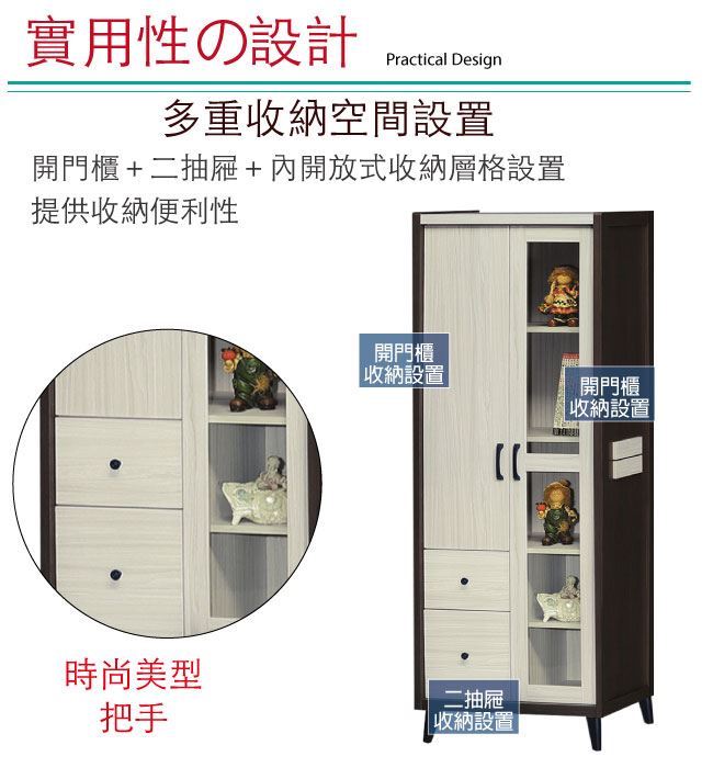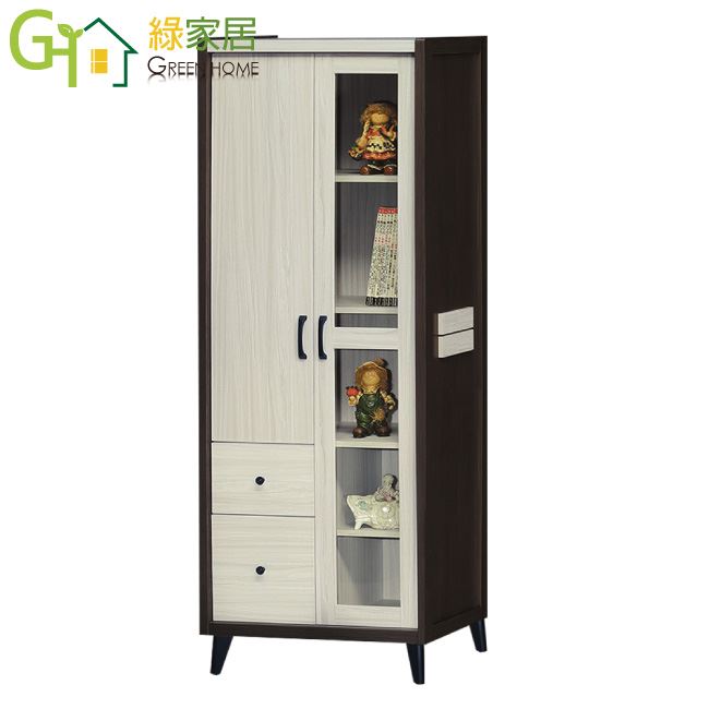 【綠家居】塞加 雙色2.2尺二門二抽高展示櫃