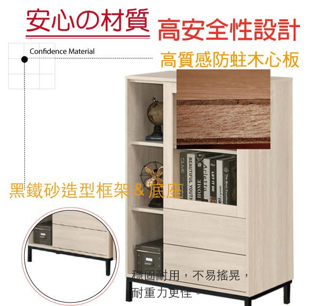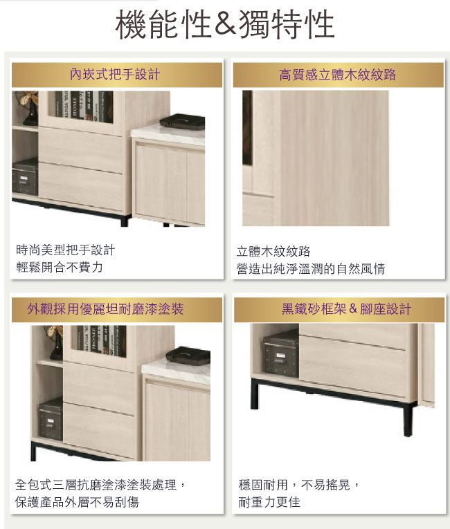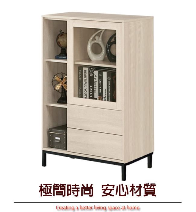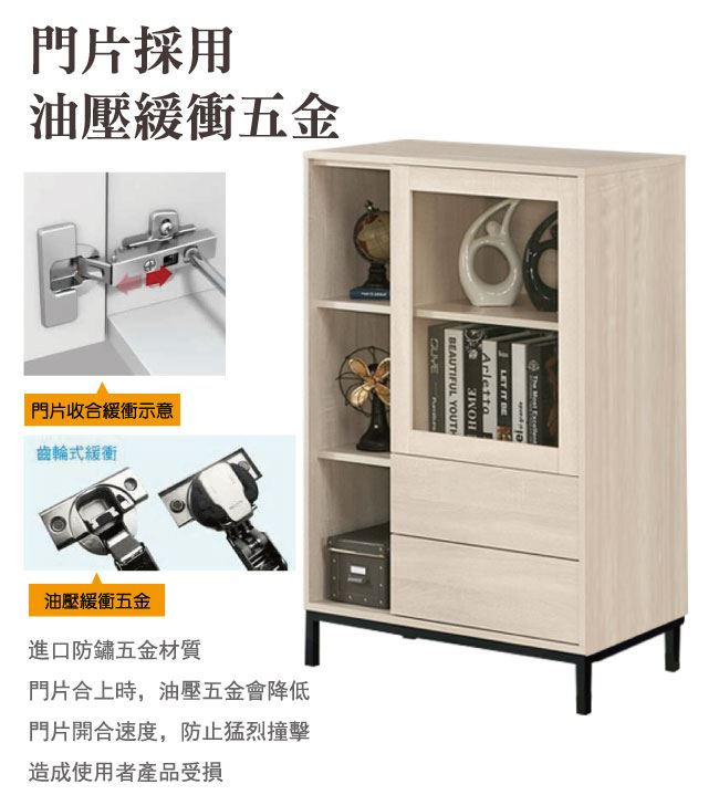 商品介紹 | 【綠家居】曼克特 時尚2.7尺單門二抽展示櫃/收納櫃 淺橡木紋色系+現代簡約風格+安心材質製造,整體採用防蛀木心板+黑鐵砂框架&腳座+五金滑軌結構+防夾手緩衝門片五金等安心材質製造,產品外層採用防潮耐磨噴漆處理搭配二抽屜+開門櫃+開放式收納層格等收納空間設計,全由專人配送到家,專業安心服務,替你省下更多時間! 【商品特色】 淺橡木紋色系+現代簡約風格+安心材質製造,使用放心+搭配居家更便利 採用防蛀木心板+黑鐵砂框架&腳座+五金滑軌結構+防夾手緩衝門片五金等安心材質製造 產品外層採用防潮耐磨噴漆處理 搭配採用二抽屜+開門櫃+開放式收納層格等收納空間設計 此商品不需要DIY組立,此商品為組立後之成品 品質保證、專業設計、貼心服務 全由專人配送到家,專業安心服務,替您省下更多時間 |