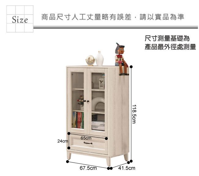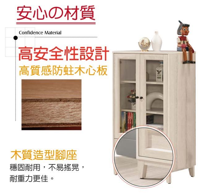 材質 | ◆產品名稱: 【綠家居】班特 時尚2.2尺二門單抽展示櫃/收納櫃 尺寸:(寬)67.5x(深)41.5x(高)118.5/公分 ◆材質: 材質:防蛀木心板+防潮木質腳座+五金滑軌結構+防夾手緩衝門片五金 噴漆:防潮耐磨噴漆處理