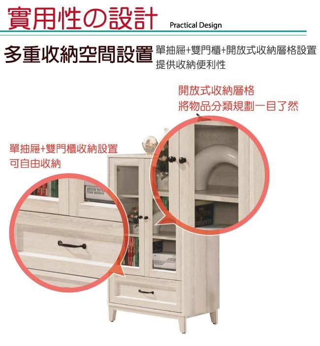 【綠家居】班特 時尚2.2尺二門單抽展示櫃/收納櫃