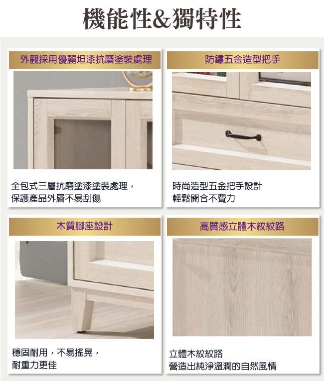 商品介紹 | 【綠家居】班特 時尚2.2尺二門單抽展示櫃/收納櫃 淺橡木紋色系+現代簡約風格+安心材質製造,整體採用防蛀木心板+防潮木質腳座+五金滑軌結構+防夾手緩衝門片五金等安心材質製造,產品外層採用防潮耐磨噴漆處理搭配單抽屜+開門櫃+內開放式收納層格等收納空間設計,全由專人配送到家,專業安心服務,替你省下更多時間! 【商品特色】 淺橡木紋色系+現代簡約風格+安心材質製造,使用放心+搭配居家更便利 採用防蛀木心板+防潮木質腳座+五金滑軌結構+防夾手緩衝門片五金等安心材質製造 產品外層採用防潮耐磨噴漆處理 搭配採用單抽屜+開門櫃+內開放式收納層格等收納空間設計 此商品不需要DIY組立,此商品為組立後之成品 品質保證、專業設計、貼心服務 全由專人配送到家,專業安心服務,替您省下更多時間 |