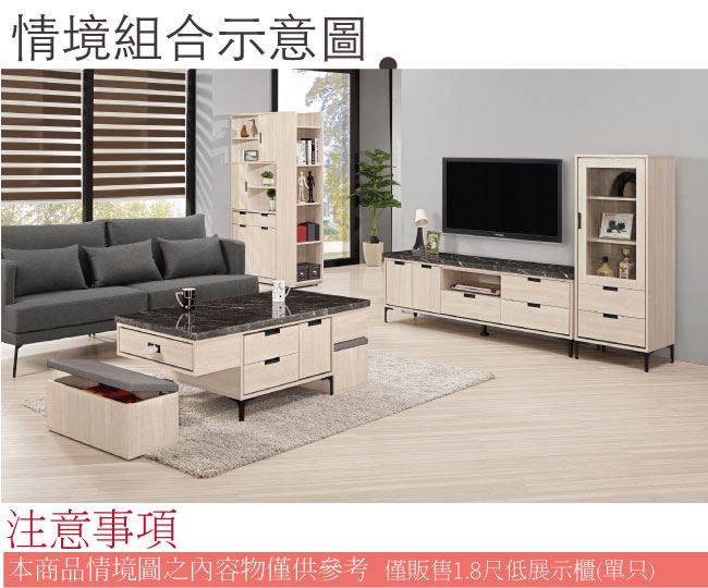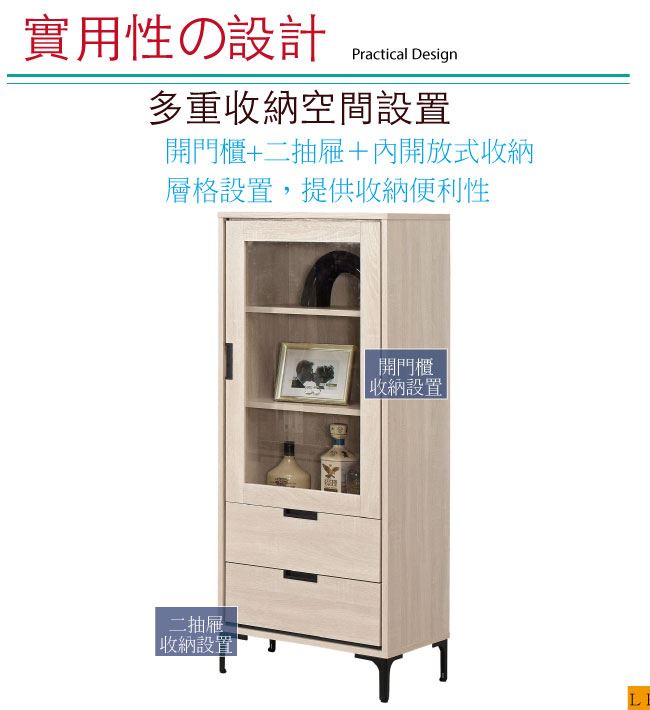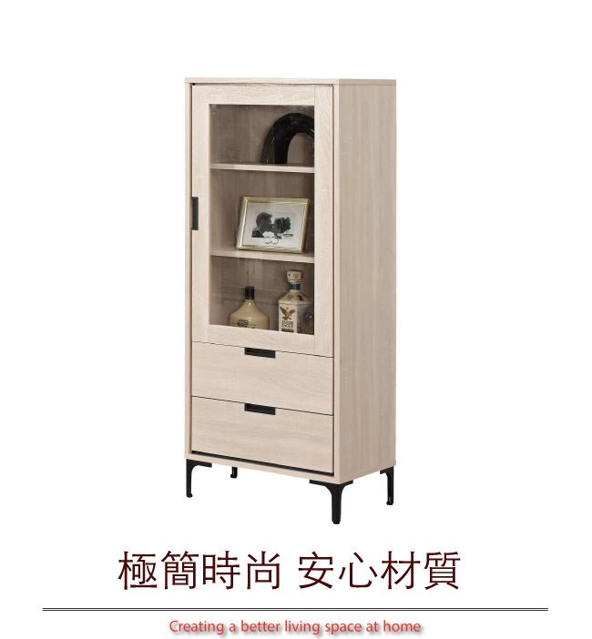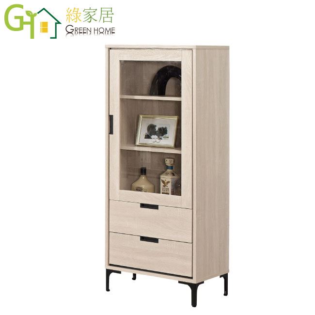 【綠家居】柏麗 淺橡1.8尺二門二抽展示櫃