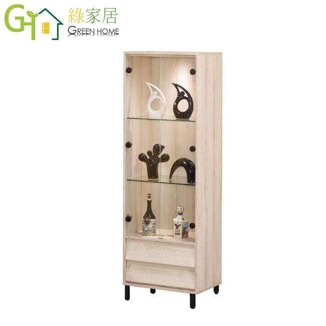 【綠家居】羅蒂卡 淺橡2尺二門二抽展示櫃/收納櫃