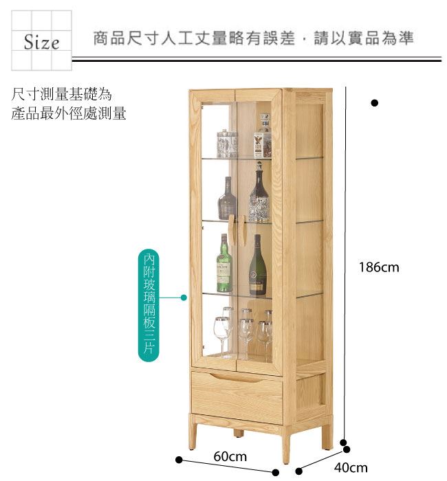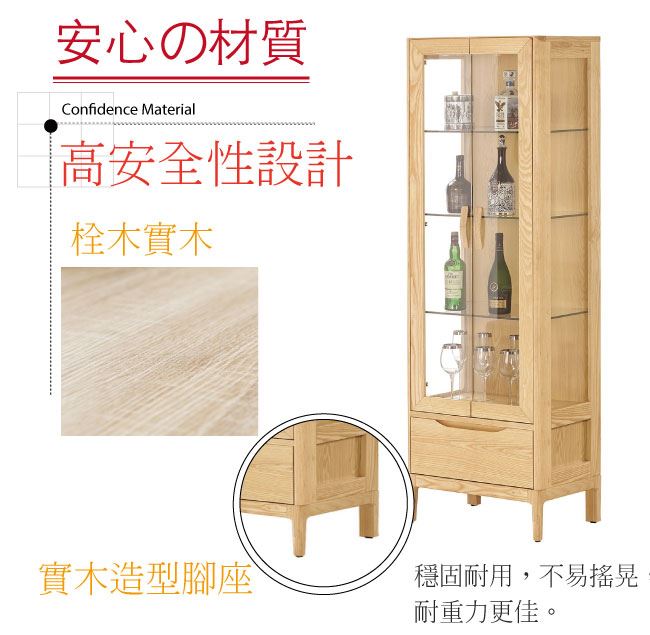 材質 | ◆產品名稱: 【綠家居】波丹蒂 實木2尺二門單抽展示櫃/收納櫃 產品尺寸: 尺寸:(寬)60x(深)40x(高)186公分 ◆材質: 材質:栓木實木+防潮實木腳座 材質:五金滑軌結構+8mm強化玻璃 +強化玻璃門片 塗漆:優利坦全包式耐磨噴漆處理