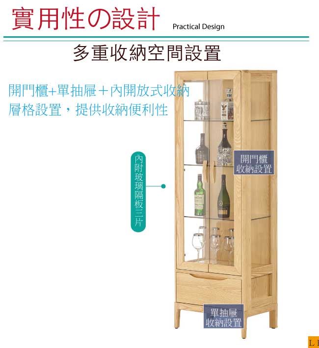【綠家居】波丹蒂 實木2尺二門單抽展示櫃/收納櫃