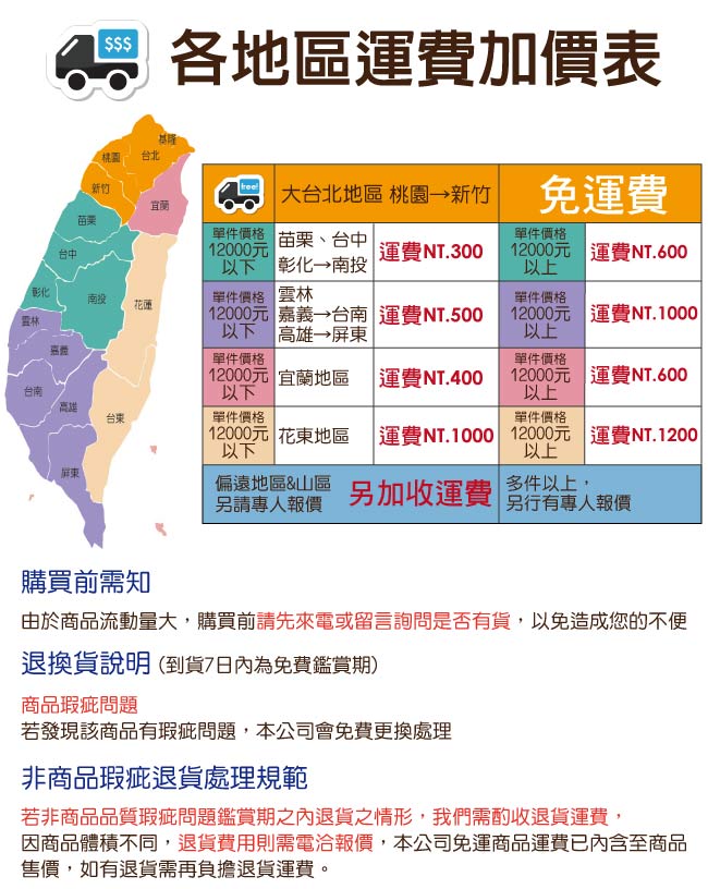 ★偏遠地區需額外加收運費,下標請先問與答詢問★ |