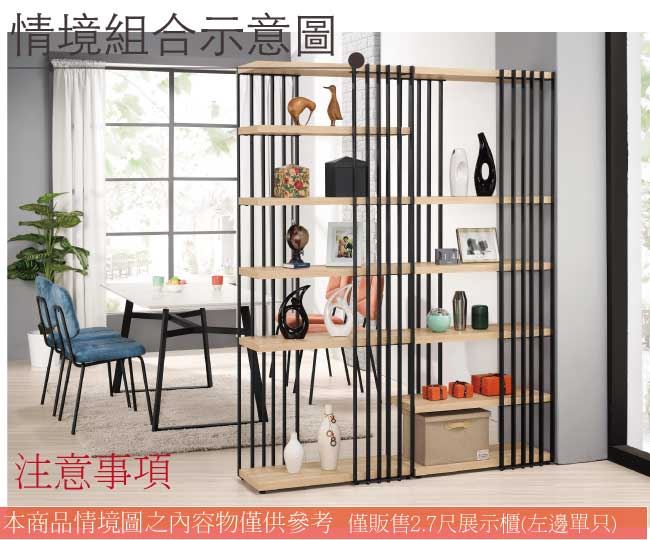 商品介紹 | 【綠家居】喬愛莎 時尚2.7尺開放式五格高展示櫃/收納櫃(二色可選) 二色可選+現代簡約風格+安心材質製造,整體採用防潮MDF板材+黑鐵砂邊框&腳座等安心材質製造,外層採用優利坦全包式耐磨噴漆處理搭配開放式層格收納設計,全由專人配送到家,專業安心服務,替你省下更多時間! 【商品特色】 二色可選+現代簡約風格+安心材質製造,使用放心+搭配居家更便利 採用防潮MDF板材+黑鐵砂邊框&腳座等安心材質製造 開放式層格收納設計 此商品不需要DIY組立,此商品為組立後之成品 品質保證、專業設計、貼心服務 全由專人配送到家,專業安心服務,替您省下更多時間 |