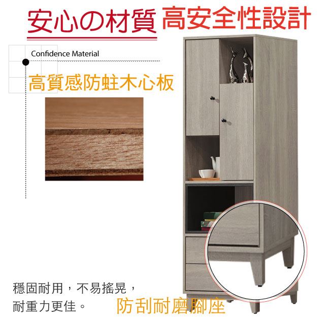材質 | ◆產品名稱: 【綠家居】約納 時尚2尺二門二抽展示櫃/收納櫃 展示櫃尺寸:(寬)40x(深)40x(高)184/公分 ◆材質: 材質:防蛀木心板+防夾手緩衝門片五金結構+防潮耐磨腳座+五金滑軌結構