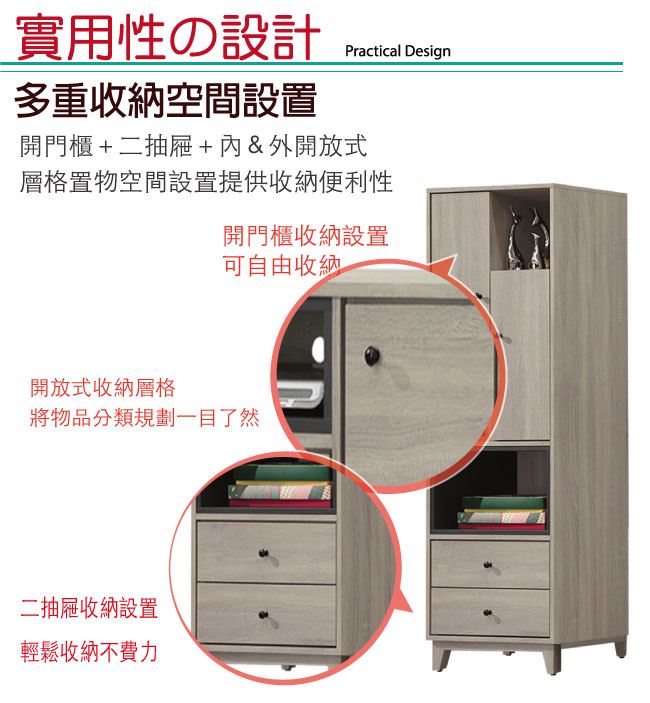【綠家居】約納 時尚2尺二門二抽展示櫃/收納櫃