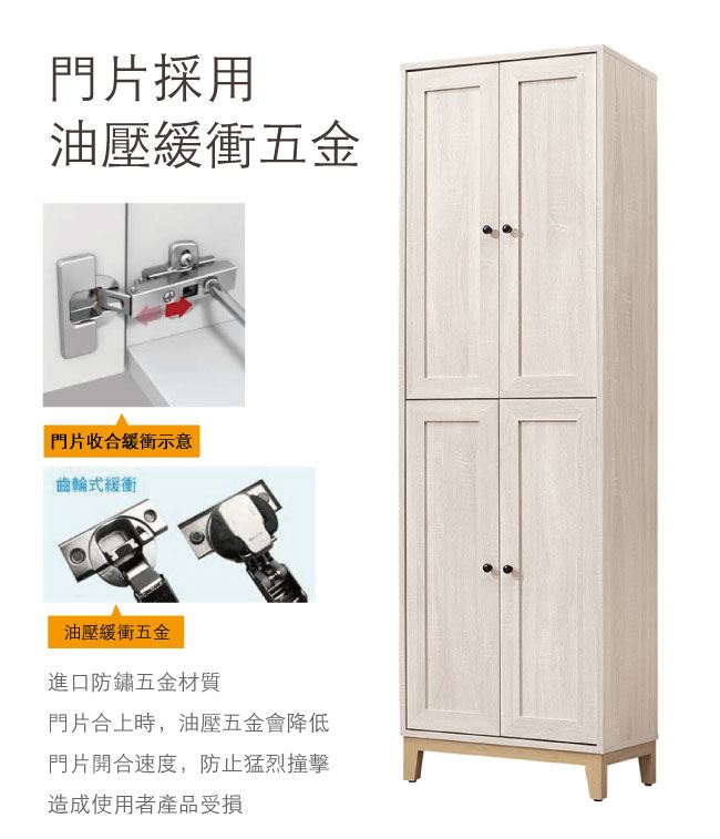 材質 | ◆產品名稱: 【綠家居】范辛頓 時尚2尺四門高收納櫃 尺寸:(寬)60x(深)40x(高)195/公分 ◆材質: 材質:防蛀木心板+防潮耐磨腳座+防夾手緩衝門片五金 噴漆:防潮耐磨噴漆處理