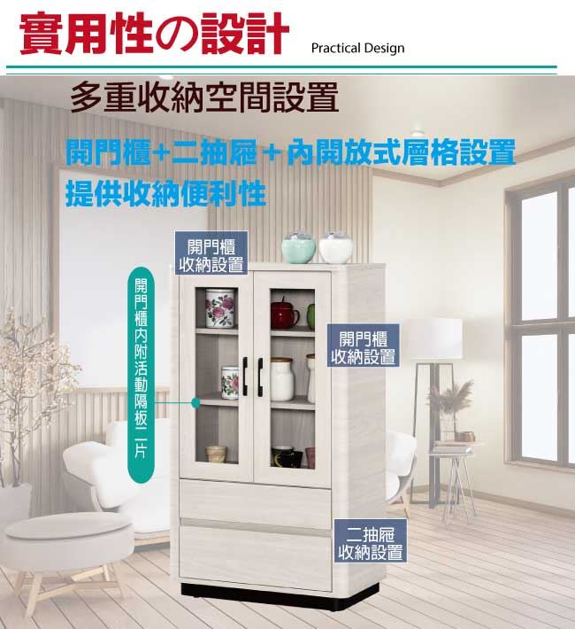【綠家居】巴卡莉2.3尺二門二抽展示櫃/收納櫃
