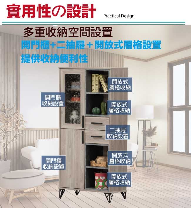 【綠家居】格魯雙色2.5尺二門二抽展示櫃/收納櫃