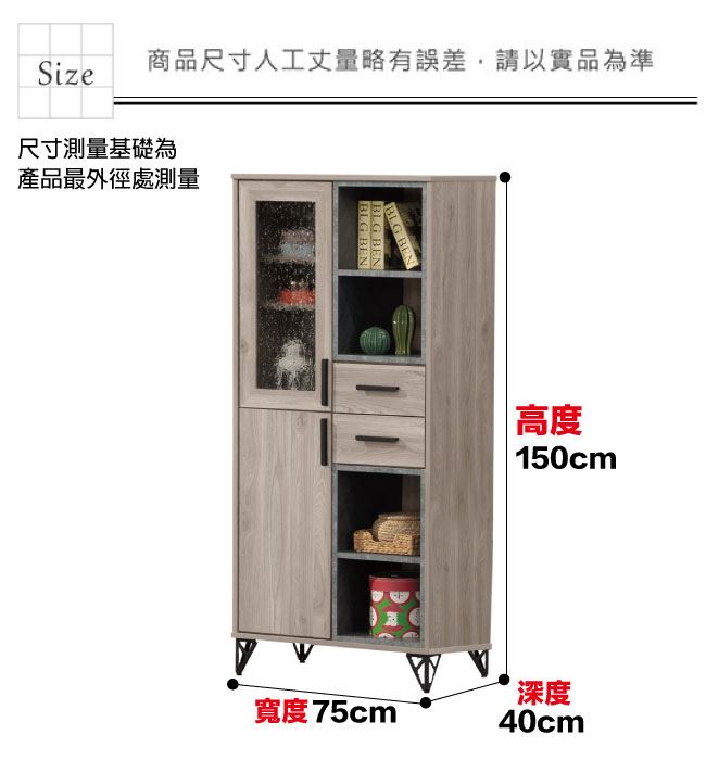 材質 | ◆產品名稱:【綠家居】格魯雙色2.5尺二門二抽展示櫃/收納櫃 尺寸:(寬)75x(深)40(高)150/公分 ◆材質: 材質:防蛀木心板+防鏽五金腳座+五金滑軌結構+防夾手緩衝門片五金 噴漆:防潮耐磨噴漆處理