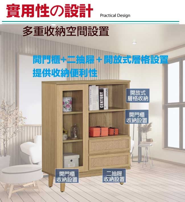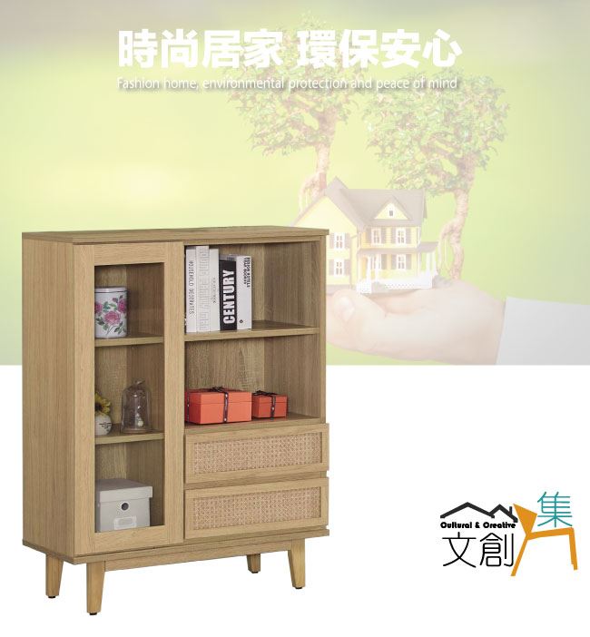 【綠家居】神奈川編織紋2尺單門二抽展示櫃/收納櫃