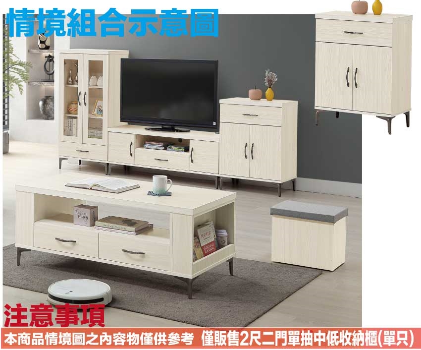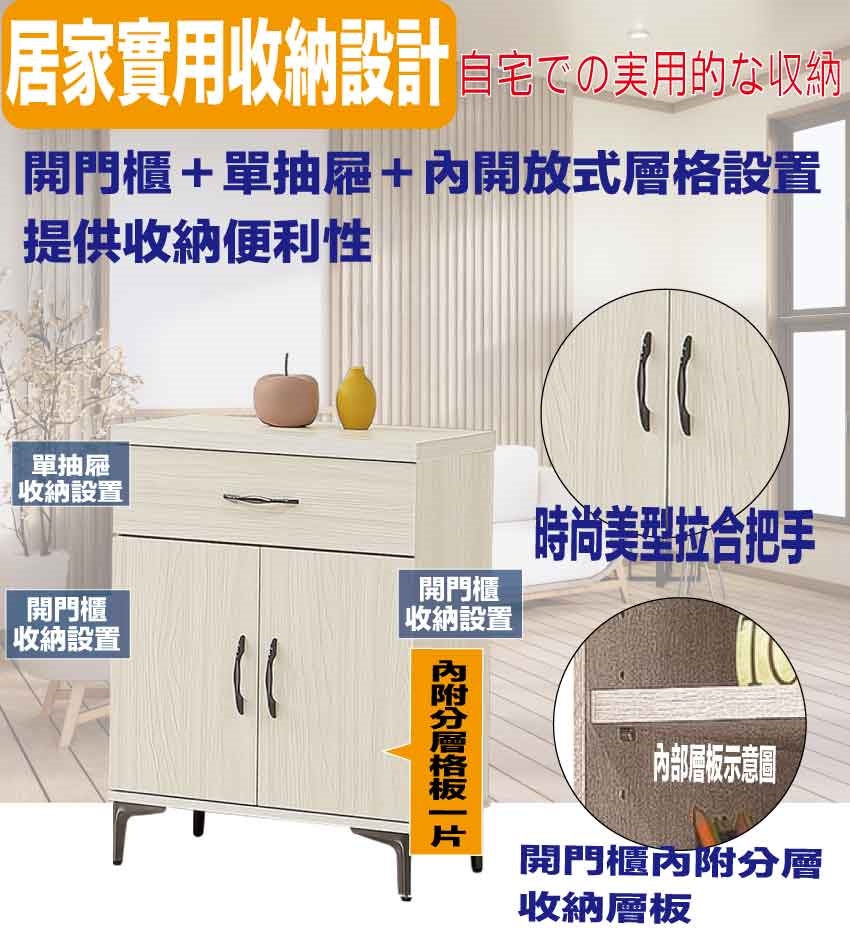 - ◆產品名稱:【綠家居】瑞秋2尺二門單抽收納櫃