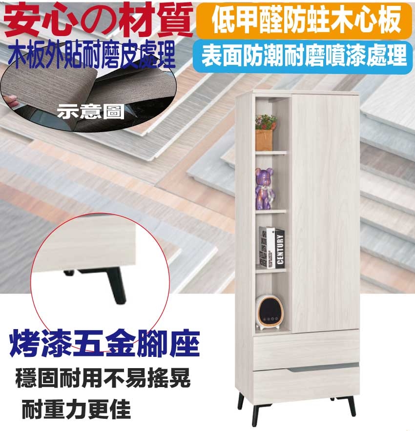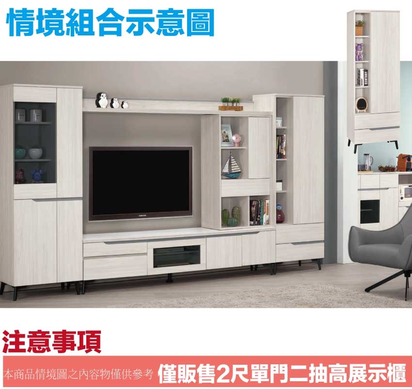 - ◆產品名稱:【綠家居】丹尼2尺單門二抽半開放高展示櫃