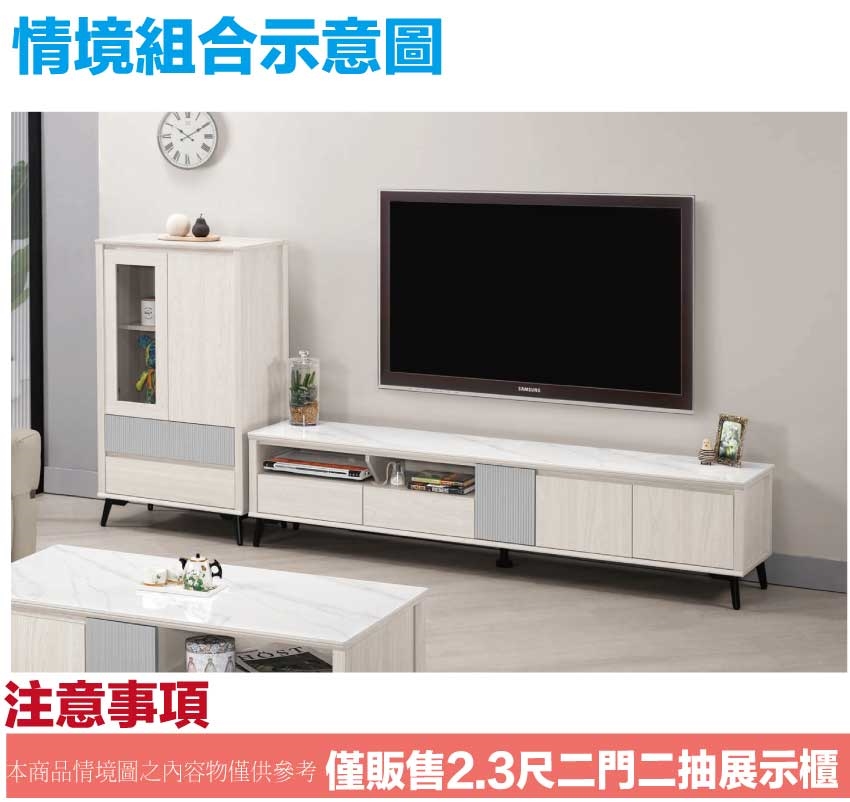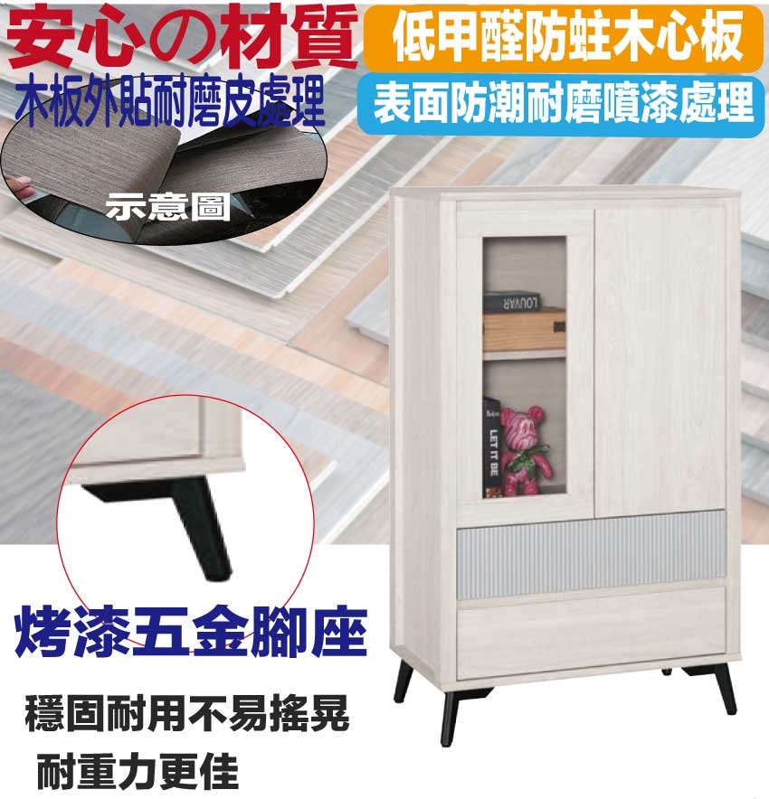 - ◆產品名稱:【綠家居】克萊雙色2.3尺二門二抽展示櫃