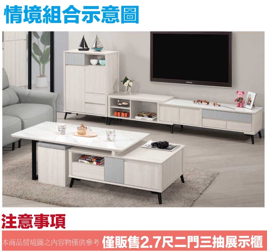 - ◆產品名稱:【綠家居】克萊雙色2.7尺二門三抽展示櫃