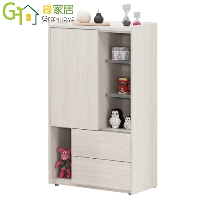 【綠家居】克萊雙色2.3尺單門二抽半開放低展示櫃
