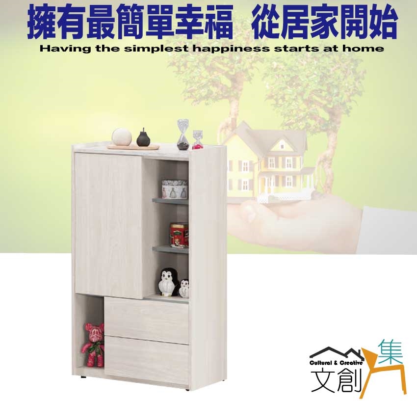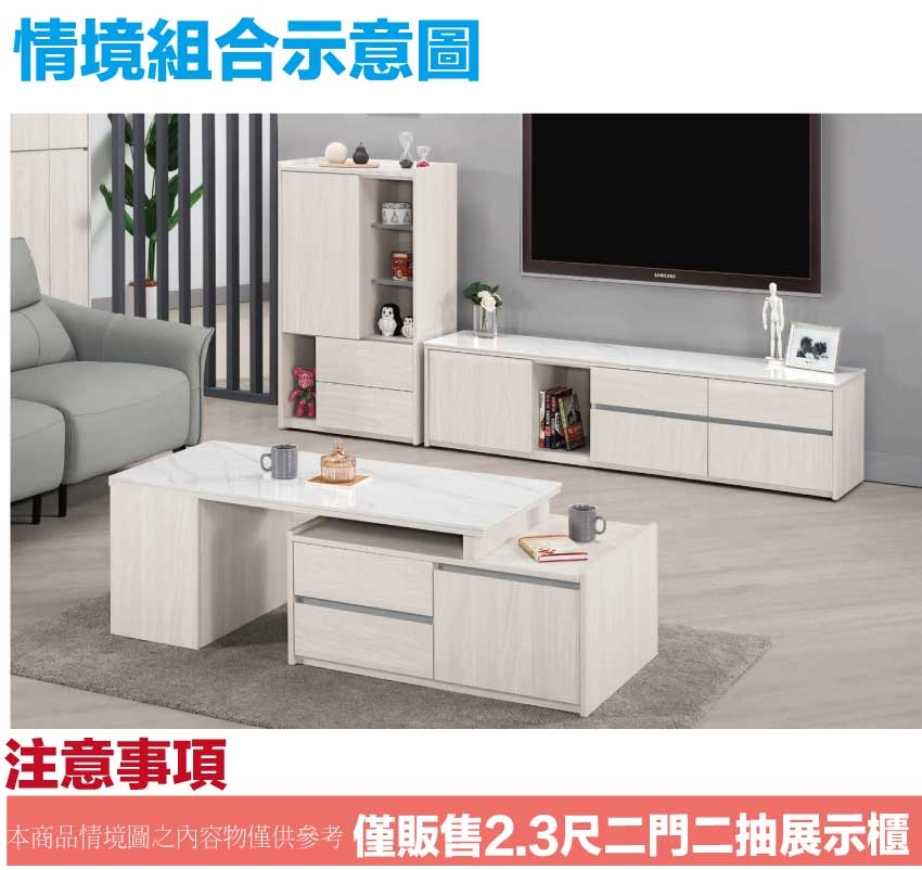 - ◆產品名稱:【綠家居】克萊雙色2.3尺單門二抽半開放低展示櫃
