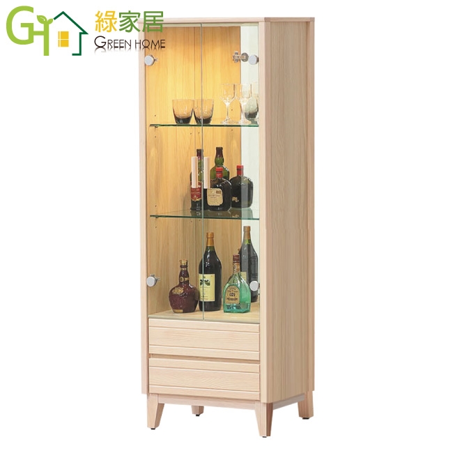 - ◆產品名稱:【綠家居】巴卡2.1尺實木玻璃二門展示櫃