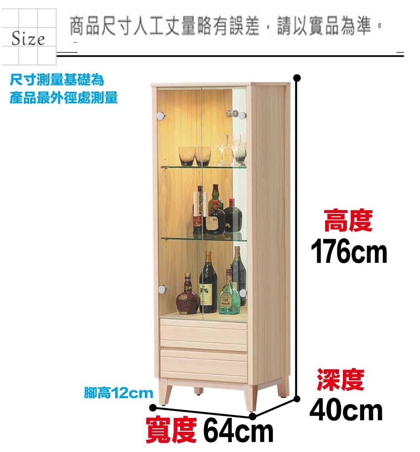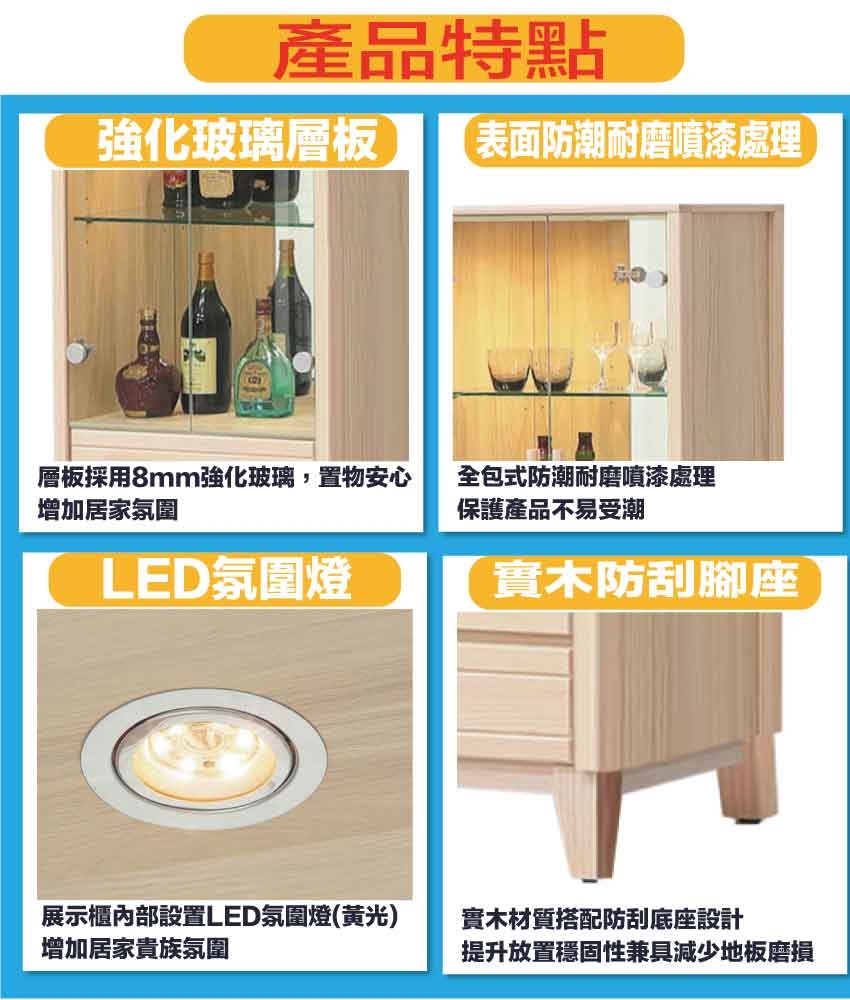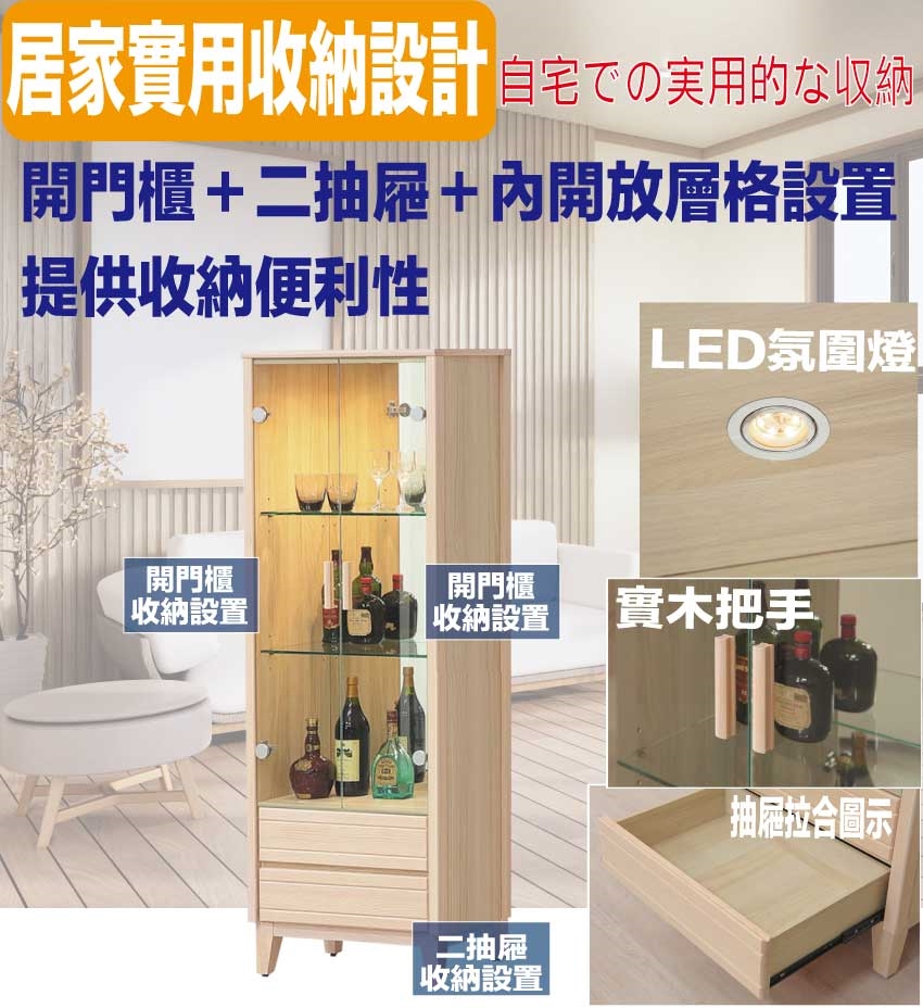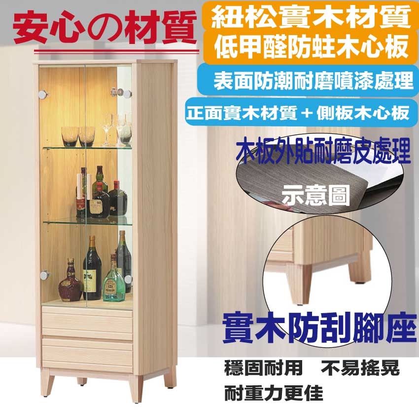 ★偏遠地區需額外加收運費,下標請先問與答詢問★ ★下訂前注意 由於商品流動較快,下訂前請先詢問是否有貨在下訂喔~★ 【綠家居】巴卡2.1尺實木玻璃二門展示櫃 橡木紋色系+安心材質製造,使用放心+搭配居家更便利,採用紐松木實木+防蛀木心板+防刮實木腳座+五金滑軌結構+防夾手環衝門片五金+強化玻璃鏡面等安心材質製造 ,外層採用防潮耐磨噴漆處理搭配開門櫃+二抽屜+內開放層格+內含LED氛圍燈等收納空間設計,全由專人配送到家,專業安心服務,替你省下更多時間!