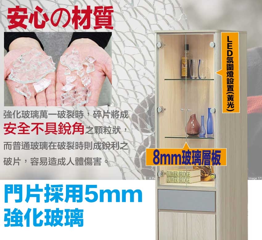 採用防蛀木心板+實木防刮腳座+五金滑軌結構+5mm強化玻璃&8mm強化玻璃層板等安心材質製造