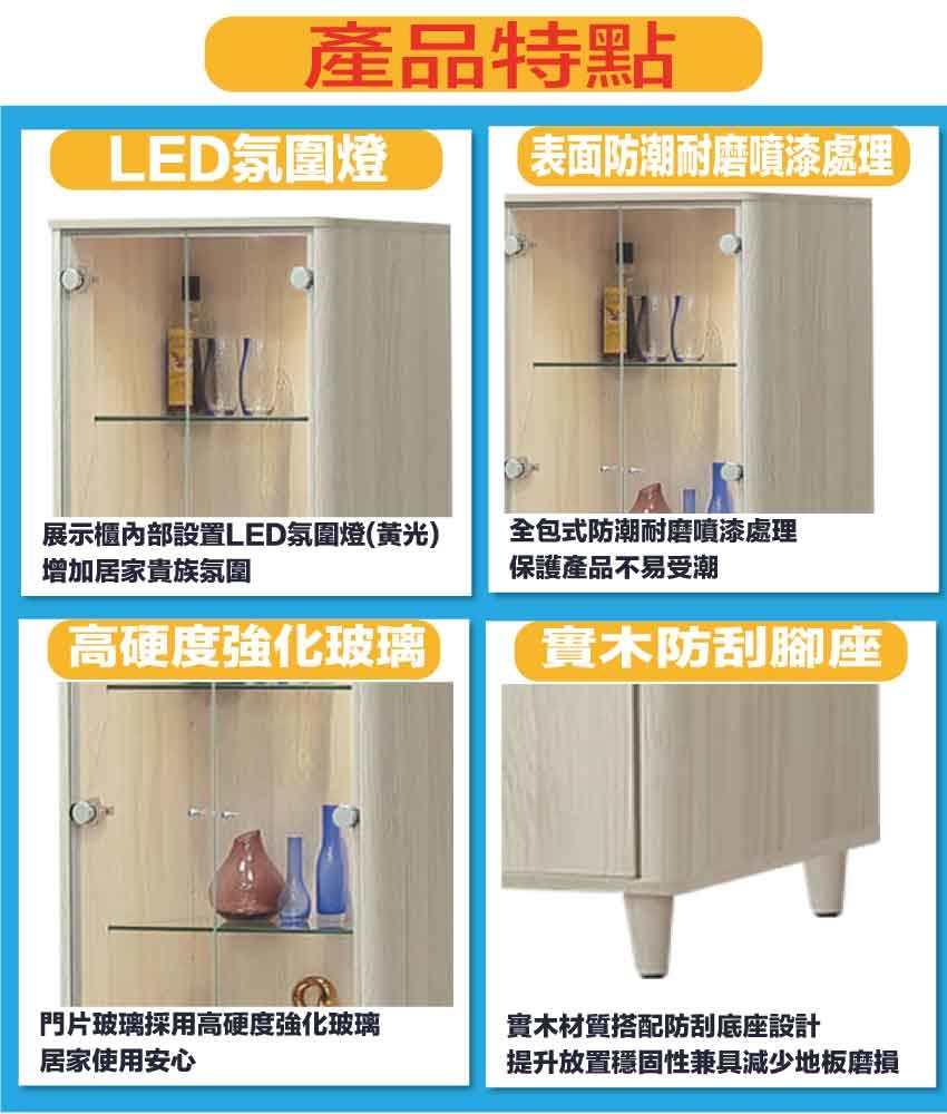 - ◆產品名稱:【綠家居】莫凡雙色2尺四門單抽展示櫃