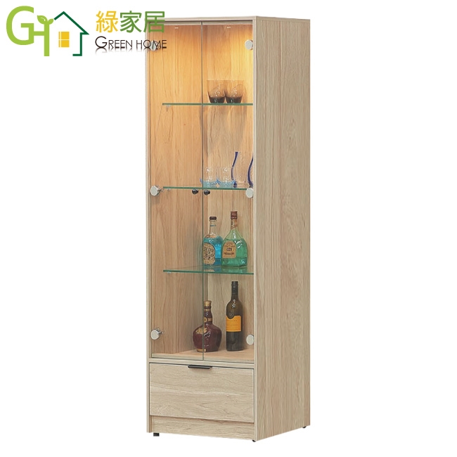 ★偏遠地區需額外加收運費,下標請先問與答詢問★ ★下訂前注意 由於商品流動較快,下訂前請先詢問是否有貨在下訂喔~★ 【綠家居】畢克爾2尺二門單抽展示櫃 橡木紋色系+安心材質製造,使用放心+搭配居家更便利,採用防蛀木心板+耐磨防刮底座+五金滑軌結構+5mm強化玻璃&8mm強化玻璃層板等安心材質製造 ,外層採用防潮耐磨噴漆處理搭配採用開門櫃+單抽屜+內開放層格+內附LED氛圍燈等收納空間設計,全由專人配送到家,專業安心服務,替你省下更多時間!
