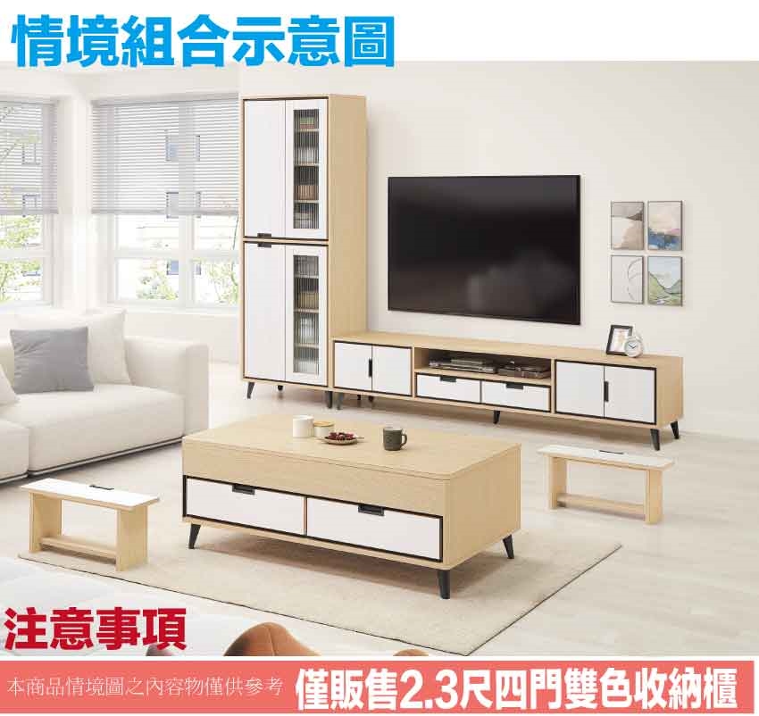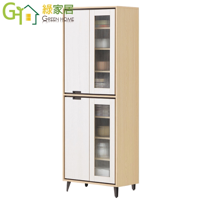 【綠家居】亞卡利雙色2.3尺開門玻璃收納櫃