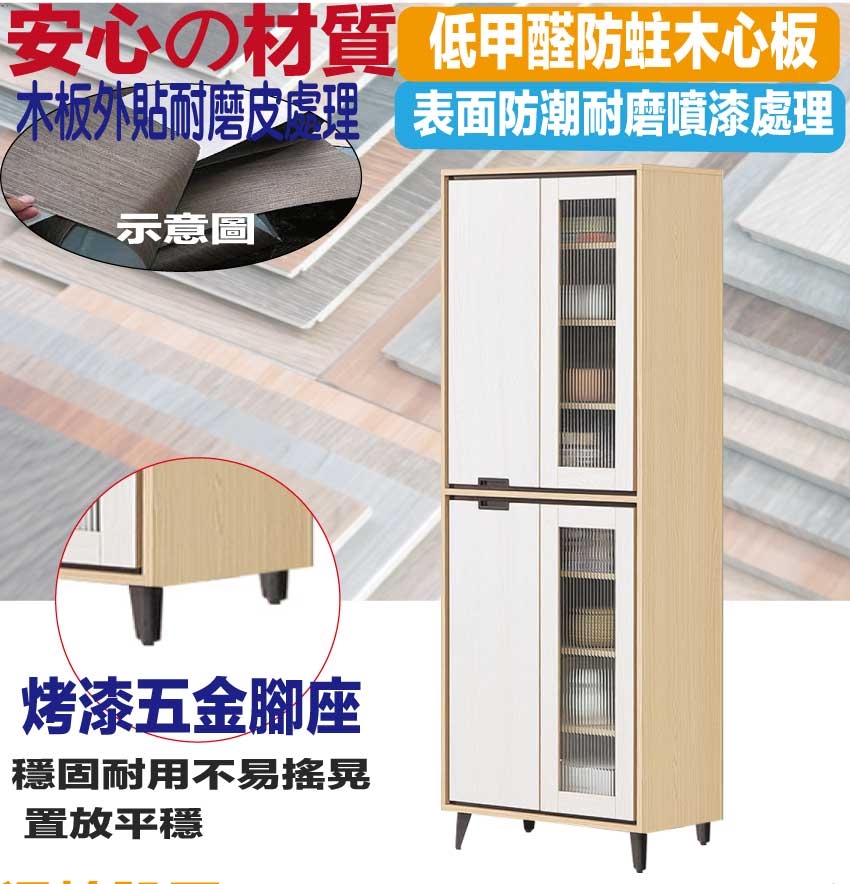 ★偏遠地區需額外加收運費,下標請先問與答詢問★ ★下訂前注意 由於商品流動較快,下訂前請先詢問是否有貨在下訂喔~★ 【綠家居】亞卡利雙色2.3尺開門玻璃收納櫃 木紋雙色系+安心材質製造,使用放心+搭配居家更便利,採用防蛀木心板+五金滑軌結構防夾手緩衝門片五金+烤漆五金腳座+5mm長虹玻璃等安心材質製造 ,外層採用防潮耐磨噴漆處理搭配採用開門櫃+內開放層格等收納空間設計,全由專人配送到家,專業安心服務,替你省下更多時間!