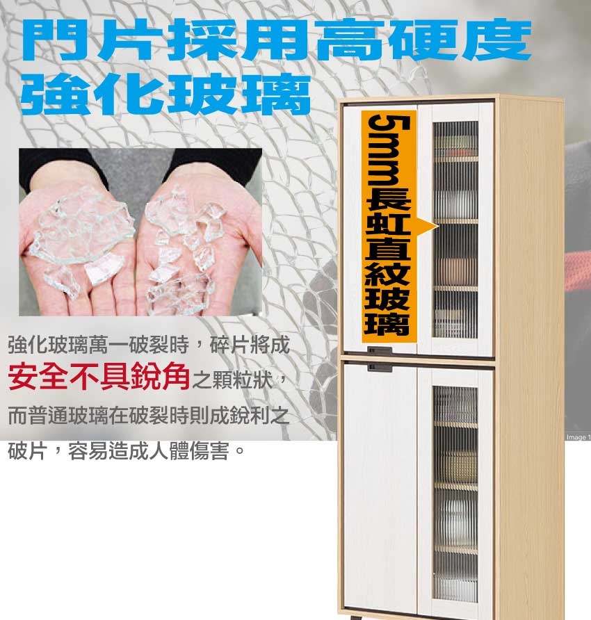 採用防蛀木心板+五金滑軌結構+防夾手緩衝門片五金+烤漆五金腳座+5mm長虹玻璃等安心材質製造