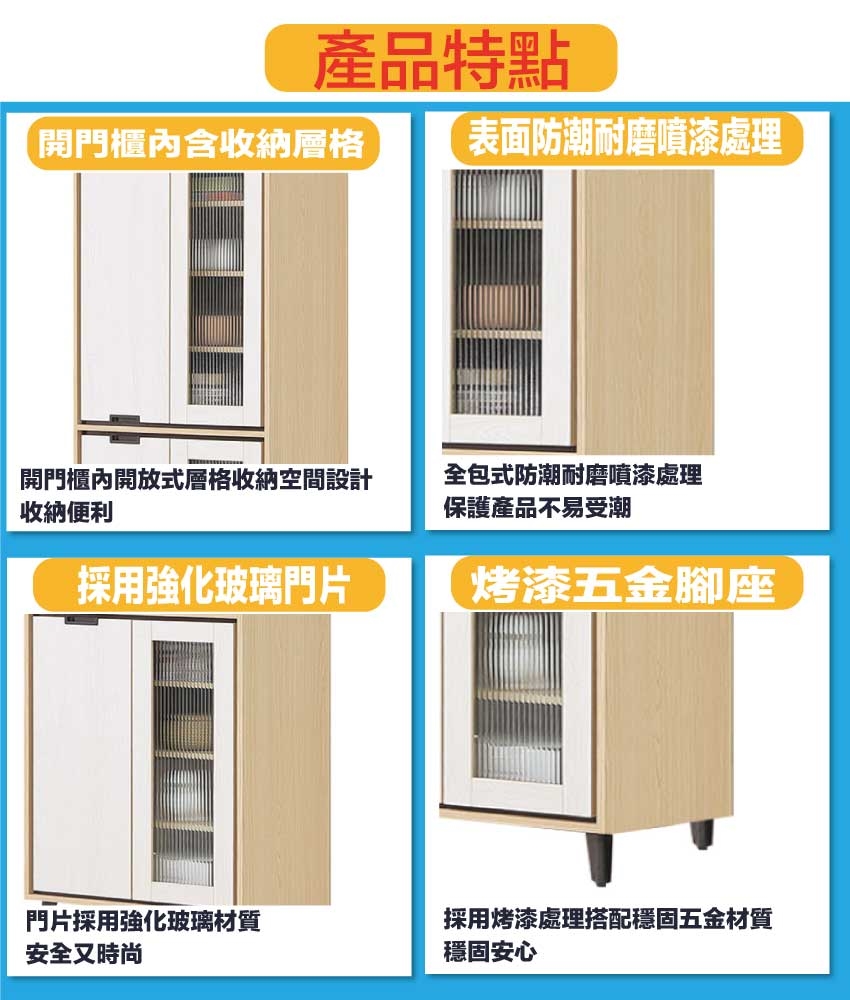 - ◆產品名稱:【綠家居】亞卡利雙色2.3尺開門玻璃收納櫃